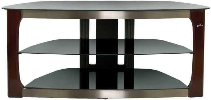 This richly crafted design blends Dark Espresso finished solid wood legs with Brushed Nickel and assembles quickly with No Tools required. The Triple Play™ system offers three configuration options to meet your display and room layout. It can accommodate most Flat Panel TVs up to 60" or 125 lbs., plus at least four audio/video components.Read More
