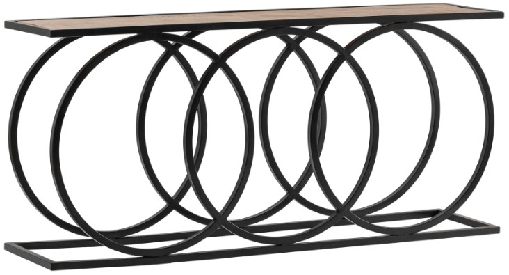 This Bengal Manor console table from Crestview features a clean wooden table top, circular metal legs in black finish. This console table is a perfect addition to your dining room, bedroom, entryway, or even a living room to create a sophisticated and attractive home.Read More