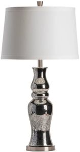 The Crestview Collection Chloe Table Lamp II features a speckled silver glass body. The translucent body has a curvy shape and sits atop a round, metal base. A tapered, white shade gives this traditional lamp a clean look. Use this lamp as an accent piece to brighten up any room.Read More