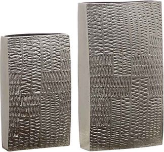Horton vases L: 7 x 2.5 x 11.5, S: 5.5 x 2 x 8.5; aluminum shiny nickel finish.Read More