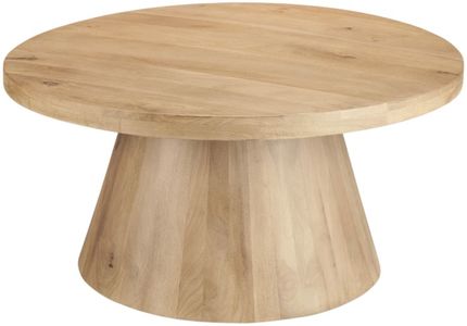 Grounded in organic beauty, this round coffee table is crafted from wood with a light-stained finish that brings out the natural grain and tone. The thick top rests on a sculptural, tapered drum base—delivering soft curves and clean lines in one cohesive silhouette.Read More