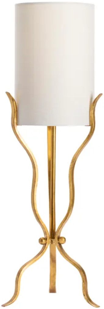 The Crestview Collection Xavier Table Lamp has a sophisticated, upplight design that will stand out in any home. Three wavy metal supports have a rich, gold gilded finish that brings warmth to your room. A white linen cylinder shade sits atop this lamp to create a transitional piece.Read More