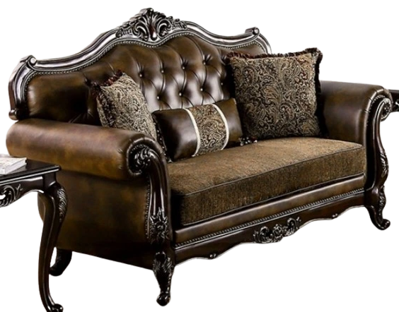 The Furniture of America® Ensenada Brown/Dark Cherry Loveseat blends classic charm with modern comfort. Its dark cherry frame and plush brown upholstery provide a luxurious feel, making it an ideal addition to any living space for both style and relaxation.Read More