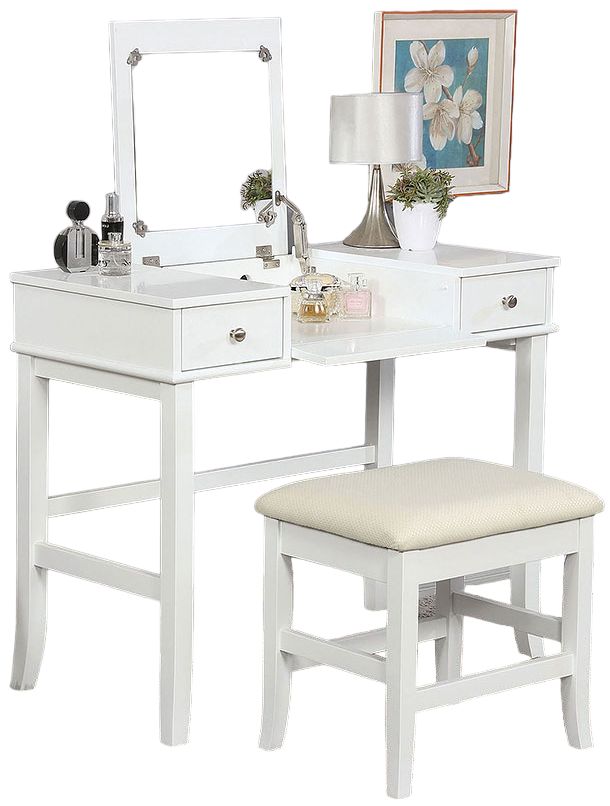 The best way to maximize a room is double use furniture. This vanity table functions as a workspace and a place to get ready for the. When not in use the mirror converts into a table top, but easily lifts up to reveal storage space and a drop down ledge for makeup and accessories.Read More