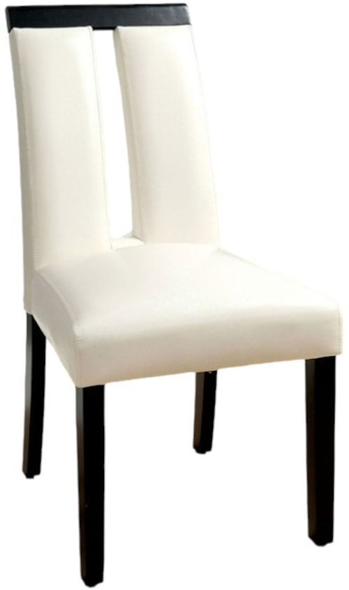 The Furniture of America® Luminar Side Chair Set offers a sleek contemporary look with a bold black frame and crisp white upholstery. Each chair features a padded seat and supportive design, blending comfort with modern elegance. Sold as a set of two, perfect for versatile dining spaces.Read More