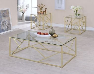 Take home this stylish table set to accentuate your living space. This contemporary piece features sophisticated criss-cross metal framework and tempered glass tops that adds a contemporary touch to the design.Read More