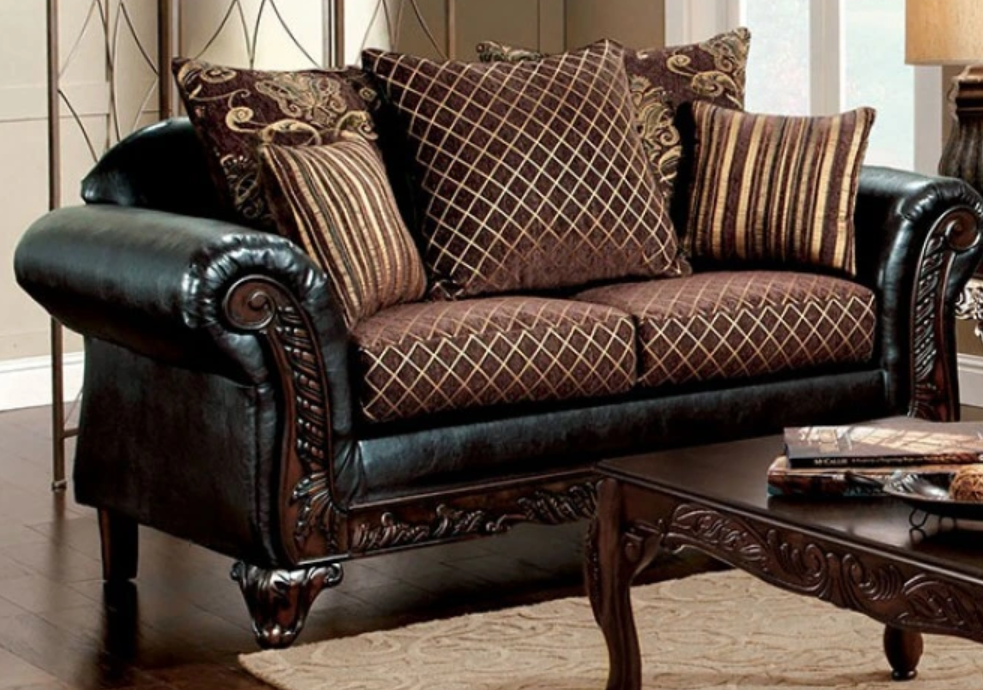 Create a refreshingly traditional space in your home with this elegant two piece set. The gold and brown fabric with intricate patterns coupled with an espresso leatherette base delivers a stunning visual focus for your living room.Read More