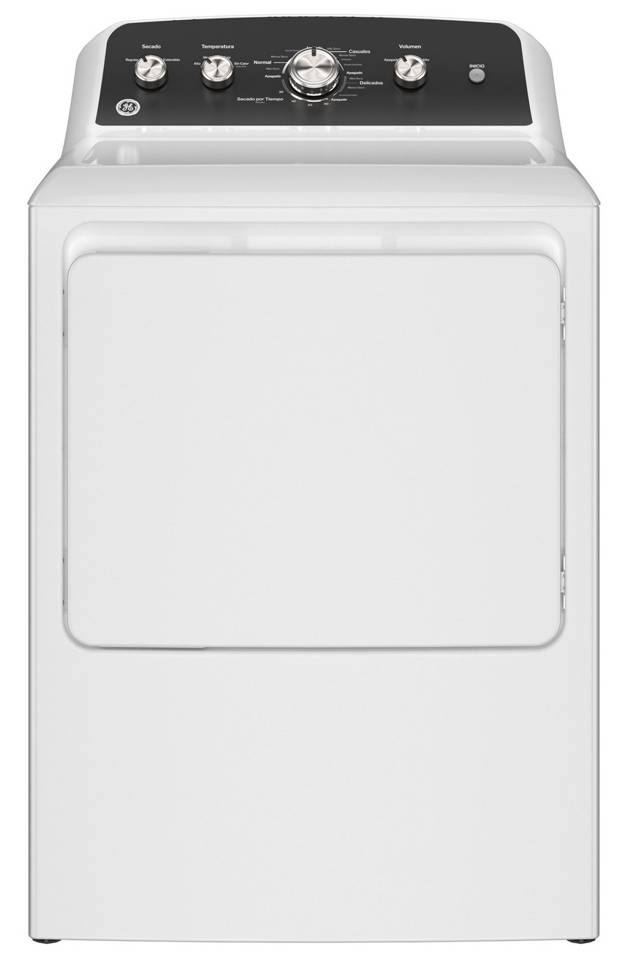GE® 7.2 Cu. Ft. White Gas Dryer features Spanish Control Panel, Auto Dry, Adjustable Cycle Signal, Reversible Dryer Door, Temperature Selection, Interior Light, Up Front Lint Filter, and Durable Aluminized Drum.Read More