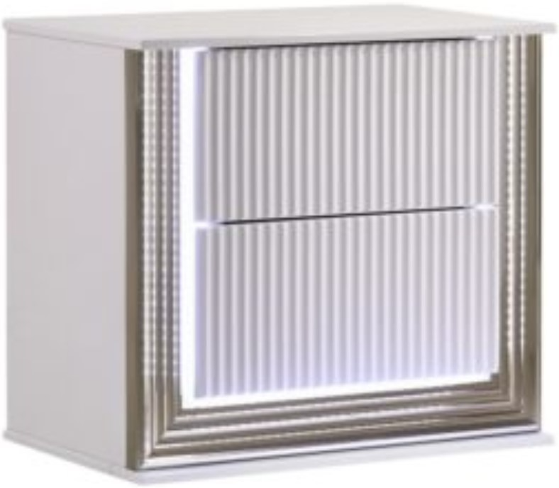 Sleek, elegant styling and exciting design details are the hallmark of the Aspen nightstand. This modern nightstand is available in dominant white with complementary ridge detail and mirror trim accents, which together create a smart and sophisticated look that will enhance many room settings/décor choices.Read More