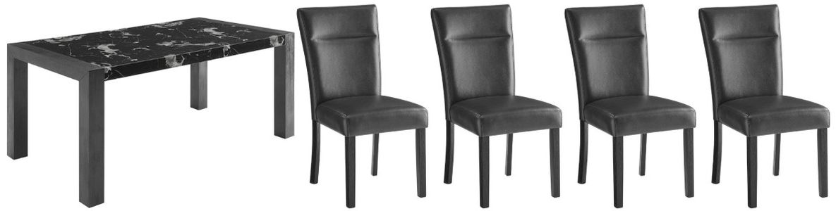 The D4088 Dining Table makes a bold statement with its striking black faux marble top, accented by dramatic white veining for a look that mirrors the beauty of real stone—without the weight or maintenance. Supported by four sleek black wood legs, this table pairs contemporary design with everyday durability.Read More