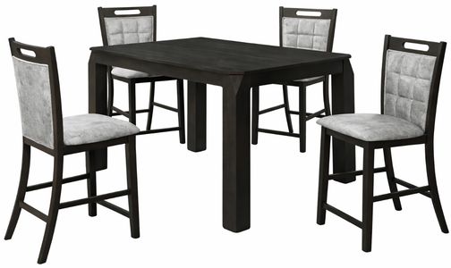 A built-in 20" butterfly leaf extension allows for easy expansion, making this table perfect for both everyday meals and entertaining guests. Paired with the table, the bar stools are upholstered in a silver fabric that provides a soft, comfortable seat while complementing the deep tones of the table. Sleek and supportive, the stools complete the contemporary look with a balanced blend of texture, color, and comfort. Ideal for kitchen islands, breakfast nooks, or casual dining areas, the D2921 Collection offers smart design and timeless style in one cohesive set.