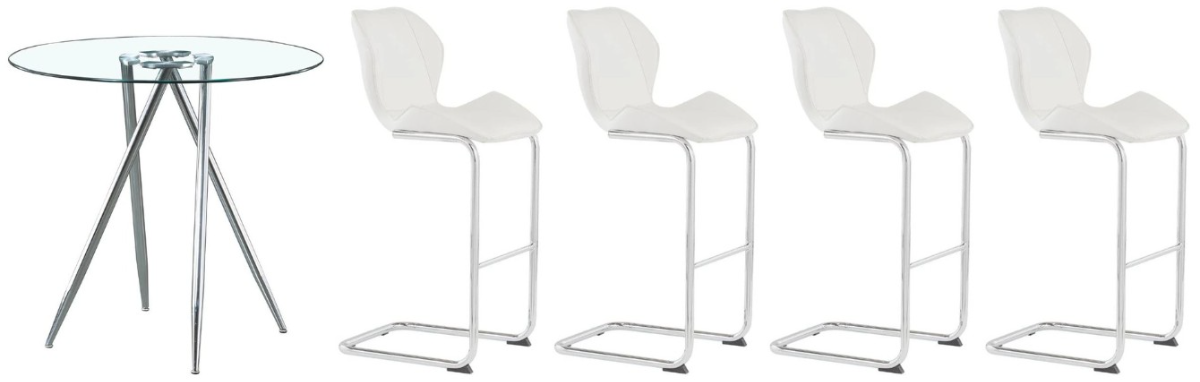 Dine-in style with the D1503BT+D1446BS-WHITE White Bar Set. This features a simple and stylish bar table boasts lean chrome metal legs with a round tempered glass top designed to cater to all your dining needs.Read More