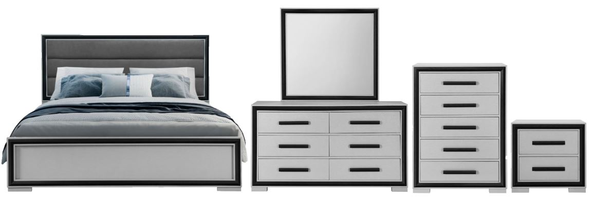 Indulge in the contemporary elegance of the Amelia Bedroom Collection by Global Furniture USA, where functionality meets sophisticated style. This stunning ensemble transforms any bedroom into a luxurious retreat with its sleek silver finish complemented by striking black accent trim.Read More