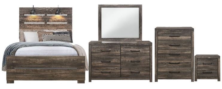 Included: One full panel bed, one chest, one nightstand, one dresser, one mirror