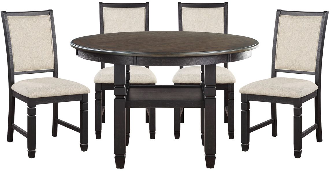 The Homelegance® Asher 5-Piece Dining Table Set features a display shelf for quick and open access to your tabletop accessories, brown and black finish over acacia veneer, and wood-framed chairs with beige fabric seats.Read More