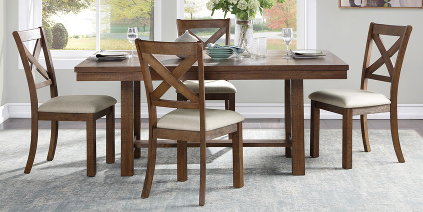 With its transitional style the Bonner Collection presents as the perfect addition to your casual dining room. Solid pine lays a foundation for the acacia veneer of the group, with a brown finish lending highlight to the distinct veneer pattern.