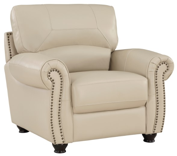 Traditional design and classic accents are paired to create the timeless look of the Foxborough Collection. Cream top-grain leather covers the plush seating of the chair everywhere the hand touches – with faux leather match covering the remaining areas. The profile of the seating arrangement is defined by elegantly rolled arms, plush seatbacks, and nailhead trim.Read More