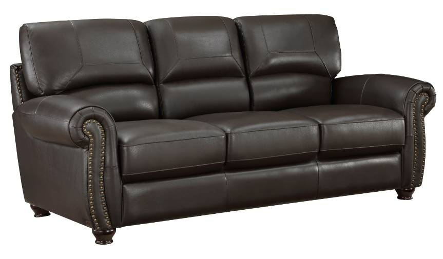 Traditional design and classic accents are paired to create the timeless look of the Foxborough Collection. Dark brown top-grain leather covers the plush seating of the sofa everywhere the hand touches – with faux leather match covering the remaining areas. The profile of the seating arrangement is defined by elegantly rolled arms, plush seatbacks, and nailhead trim.Read More