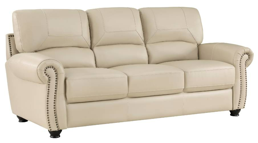 Traditional design and classic accents are paired to create the timeless look of the Foxborough Collection. Cream top-grain leather covers the plush seating of the sofa everywhere the hand touches – with faux leather match covering the remaining areas. The profile of the seating arrangement is defined by elegantly rolled arms, plush seatbacks, and nailhead trim.Read More