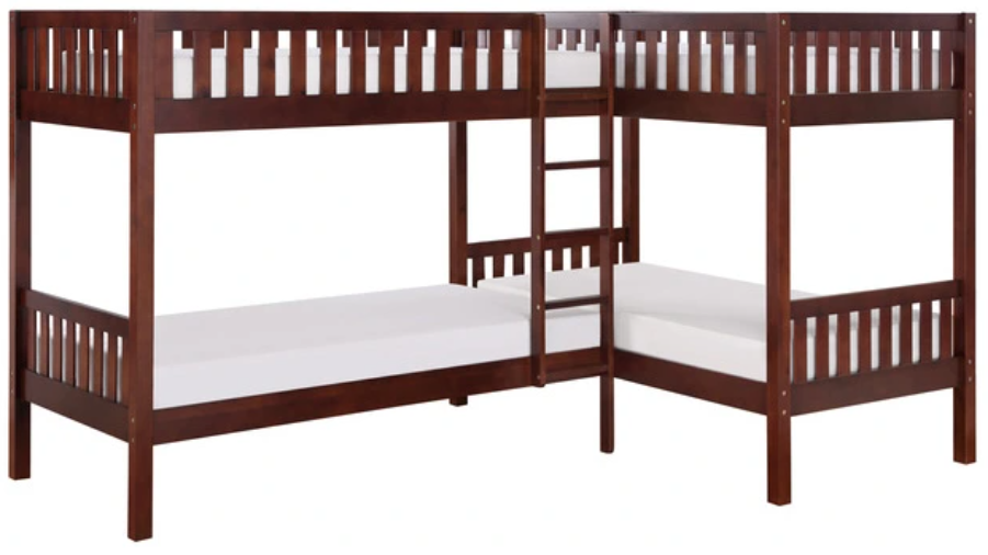 Maximizing sleep space is achieved with the stylish Rowe Collection. This transitional corner bunkbed is featured in a dark cherry finish making it an appropriate choice for a number of youth bedroom settings. The four twin beds that comprise the unit conjoin to fit perfectly within your available space.Read More