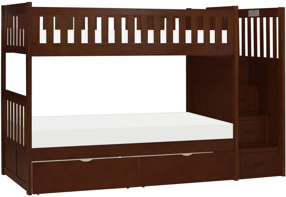Maximizing sleep space is achieved with the stylish Rowe collection. This transitional twin over twin reversible storage stairstep bunkbed is featured in a dark cherry finish making it an appropriate choice for a number of youth bedroom settings.Read More