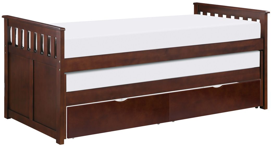 Maximizing sleep space is achieved with the stylish Rowe collection. This transitional twin over twin bed is featured in a dark cherry finish making it an appropriate choice for a number of youth bedroom settings.Read More
