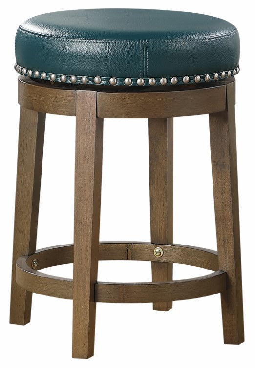 Transitional styling paired with versatility of selection makes the Westby collection a perfect addition to your home’s casual dining spaces. The round, swivel seat, counter height stool is presented at 24-inches. The brown finished wood legs complement the green faux leather seat which features nailhead trim that further defines the stool’s round profile.Read More