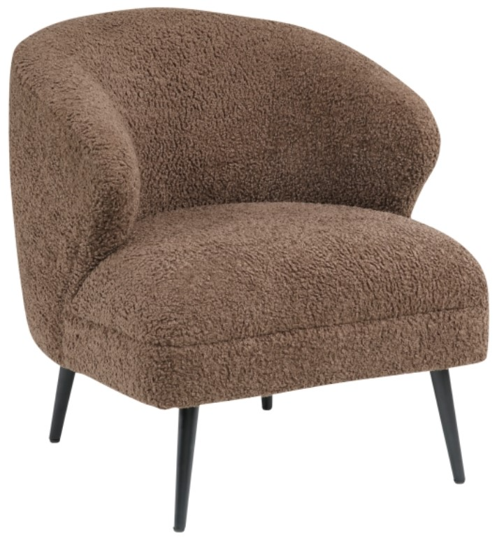 The textured bouclé fabric adds warmth and style, while the sleek metal legs provide sturdy support and a touch of contrast. Whether placed in a living room, bedroom, or reading nook, this chair is the perfect spot for relaxation while making a chic statement in any space.