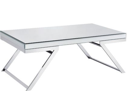 Modern glam styling in a Coffee Table that will instantly add sparkle to any room. The Alfresco Coffee Table features a glistening chrome base and a reflective bevel mirrored top in a table that is just the right size for most living areas. The mirrored base opens up a room with its light and airy design so that it almost disappears but for the occasional sparkle or reflection.Read More