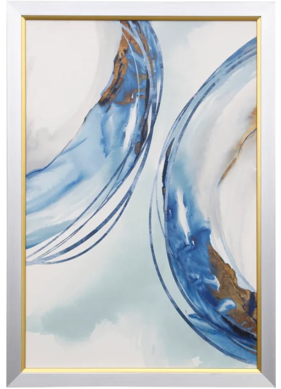 Include this Blue Water Rings I wall art in your living room design, which features textured print custom framed. This wall art will surely make a statement in your living room design.Read More