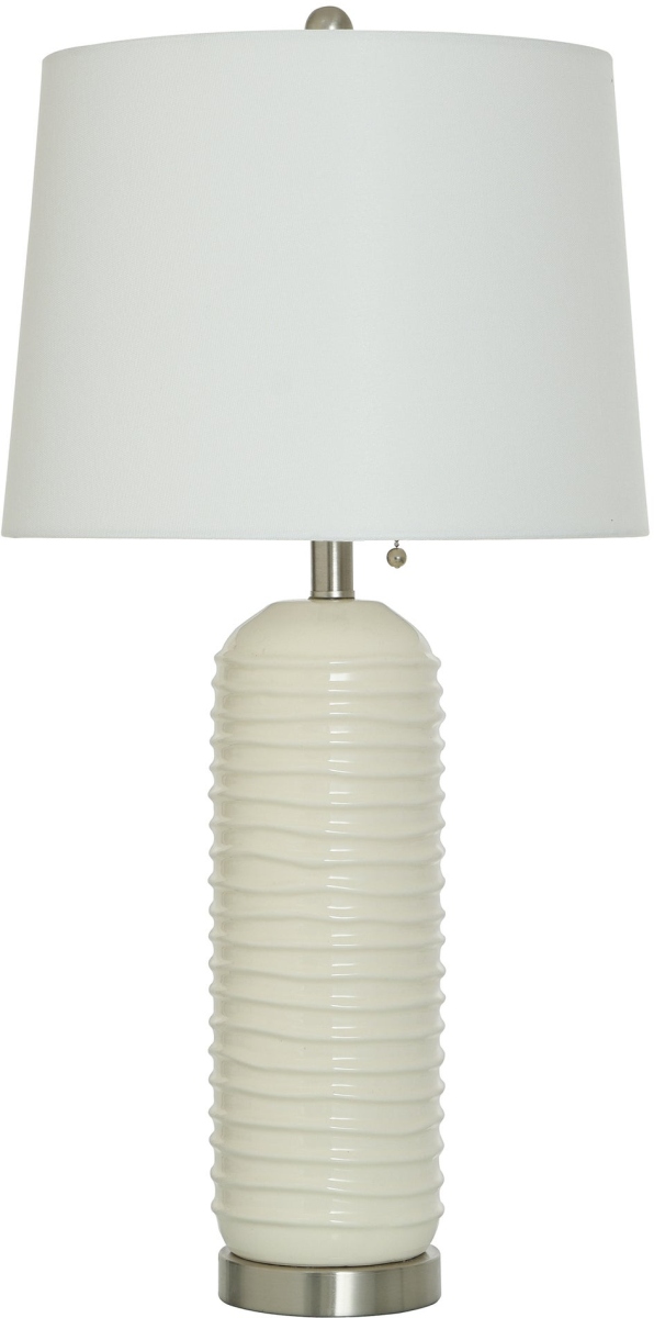 Stylecraft Ceramic White Table Lamp features white base and white drum shade.Read More