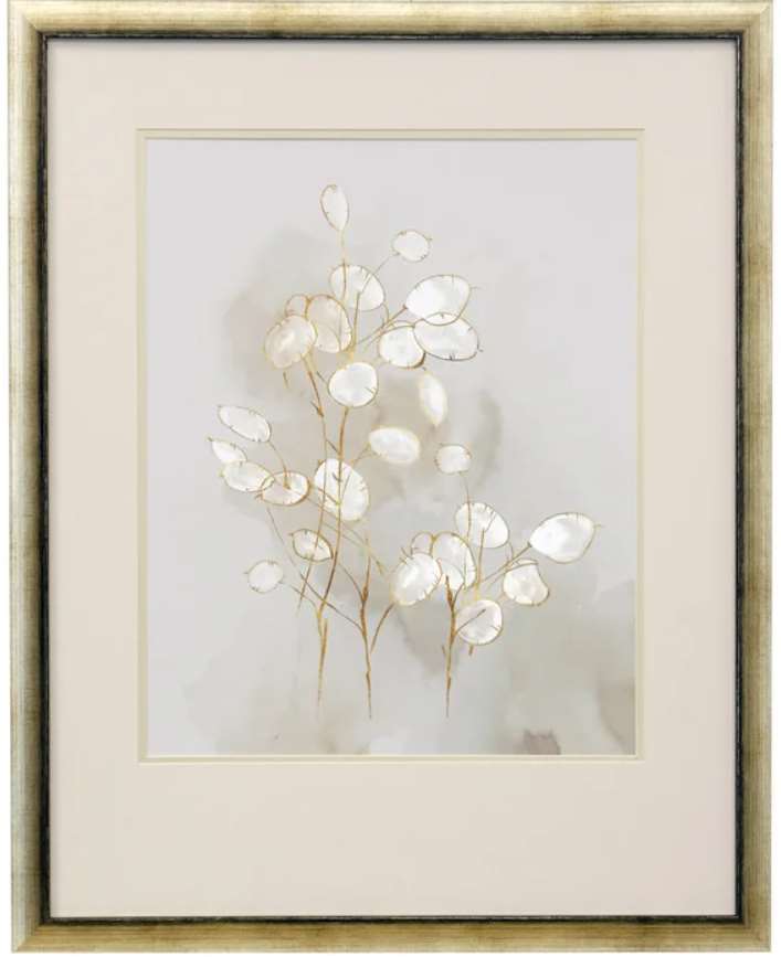This wall art framed print is shown in beige, light gray and white color and has a gold frame that is sure to add a touch of elegance to any room. It comes with a dimension of 24" in width.Read More
