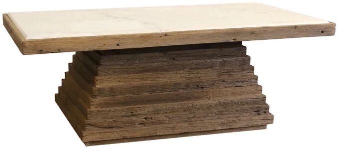 Natural reclaimed wood coffee table with marble top
