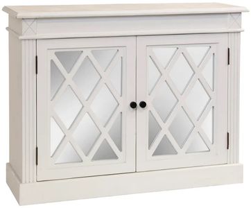 This compact cabinet features a clean white frame accented with mirrored door fronts, creating a bright and elegant look. Designed for smaller spaces, it offers functional concealed storage while adding light, depth, and sophistication to any room.Read More